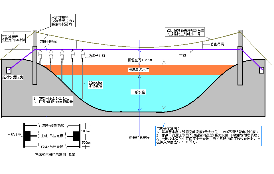 用途: 庫,塘,河流泄洪防魚逃。 優(yōu)點(diǎn):與網(wǎng)攔相比 1、不影響正常泄洪 2、適合任何地形 3、攔魚效率高 4、不存在掛、老化問題經(jīng)久耐用 5、不需要人員管理,一次安裝永不維護(hù) 技術(shù)指標(biāo): 1、脈沖頻率:5---20Hz可調(diào) 2、負(fù)載能力:最小0.5歐姆 3、輸出電壓:2200Vp—p 4、消耗功率:2kw 5、電源電壓;220V/AC50Hz 6、使用環(huán)境溫度-10---50℃ 7、環(huán)境濕度:小于80% 8、整機(jī)電流:3—10A 9、單機(jī)攔魚最大水面幅寬85米 10、攔魚最大水深30米 11、工作形式:連續(xù) 12、整機(jī)質(zhì)量:64 KG